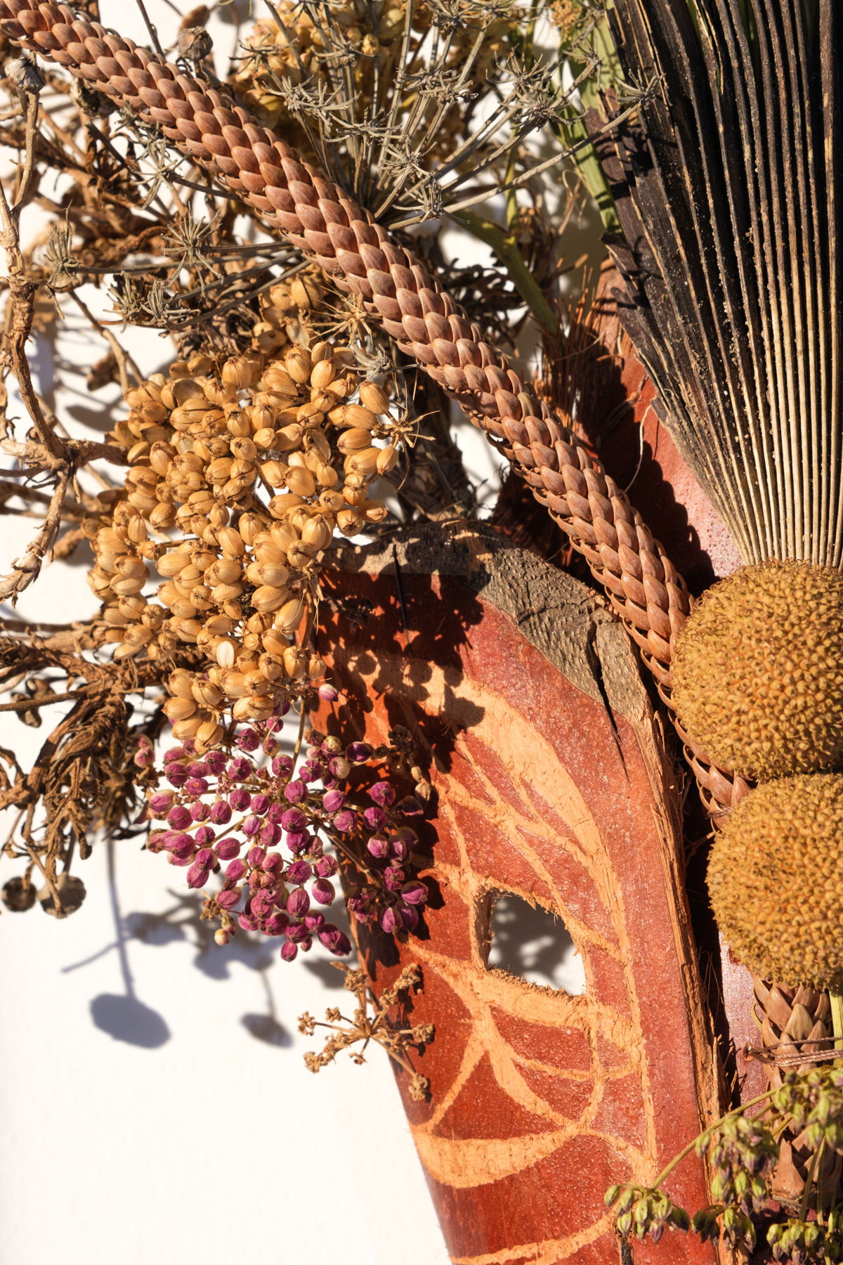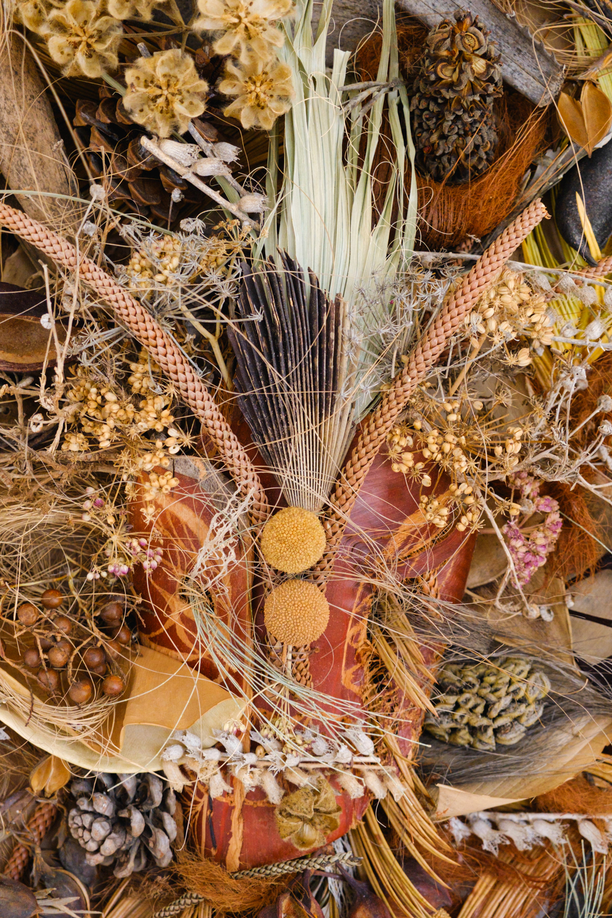 Anima is an interdisciplinary work that undergoes various processes of creation, transformation, and decay. From the creation of the costume, consisting of a face mask, shoulder and neck adornments, a top, and a skirt, to its completion as a mural on canvas, and to the possibility of being completely returned to nature through composting.